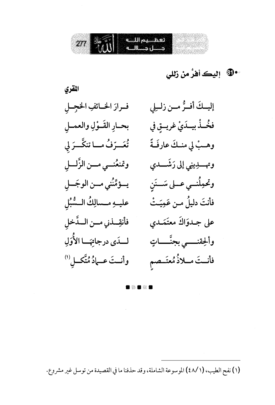 (¬1) نفح الطيب، (1/ 48) الموسوعة الشاملة، وقد حذفنا ما في القصيدة من توسل غير مشروع.