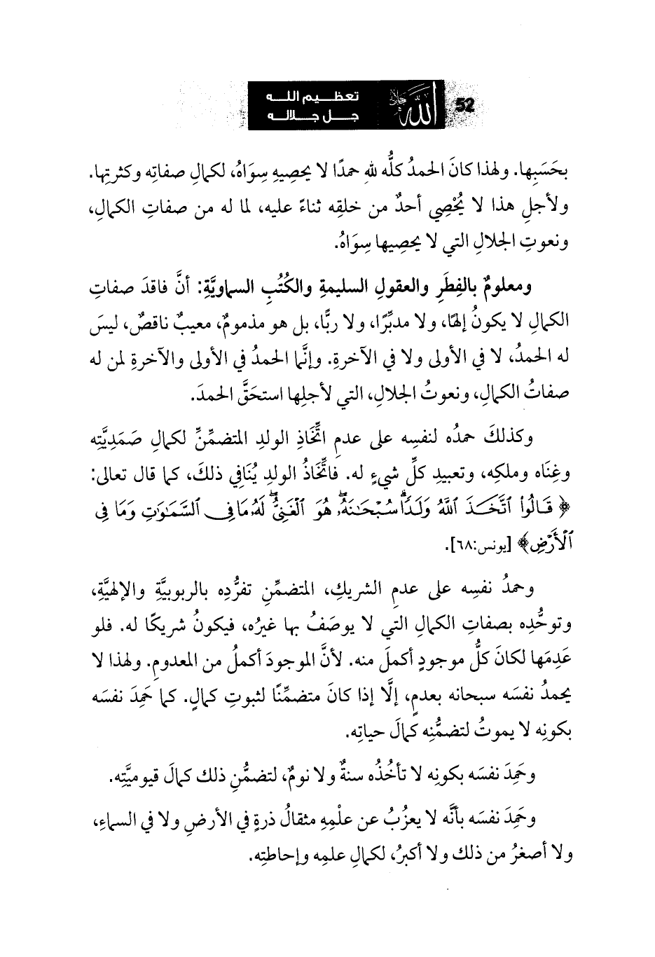 ومعلومٌ بالفِطَرِ والعقولِ السليمةِ والكُتُبِ السماويَّةِ: أنَّ فاقدَ صفاتِ الكمالِ لا يكونُ إلهًا، ولا مدبِّرًا، ولا ربًّا، بل هو مذمومٌ، معيبٌ ناقصٌ، ليسَ له الحمدُ، لا في الأولى ولا في الآخرةِ. وإنَّما الحمدُ في الأولى والآخرةِ لمن له صفاتُ الكمالِ، ونعوتُ الجلالِ، التي لأجلِها استحَقَّ الحمدَ.