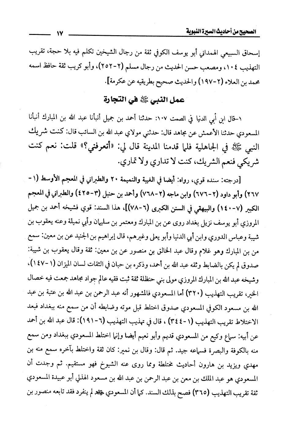 1 - قال ابن أبي الدنيا في الصمت 107: حدثنا أحمد بن جميل أنبأنا عبد الله بن المبارك أنبأنا المسعودي حدثنا الأعمش عن مجاهد قال: حدثني مولاي عبد الله بن السائب قال: كنت شريك النبي - صلى الله عليه وسلم - في الجاهلية فلما قدمنا المدينة قال لي: "أتعرفني؟ " قلت: نعم كنت شريكي فنعم الشريك، كنت لا تداري ولا تماري.