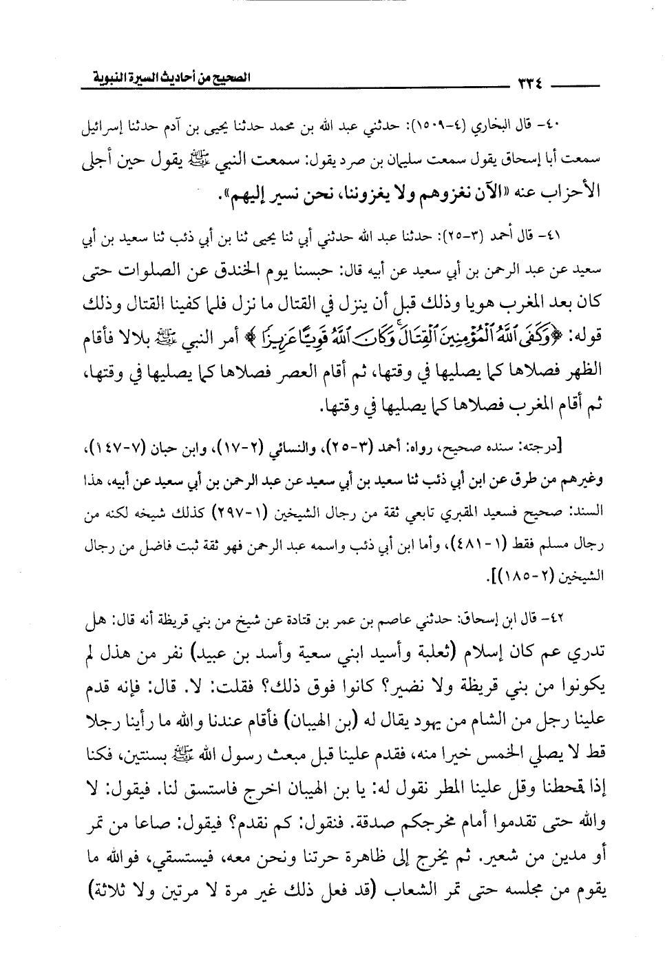 40 - قال البخاري (4 - 1509): حدثني عبد الله بن محمد حدثنا يحيى بن آدم حدثنا إسرائيل سمعت أبا إسحاق يقول سمعت سليمان بن صرد يقول: سمعت النبي - صلى الله عليه وسلم - يقول حين أجلى الأحزاب عنه "الآن نغزوهم ولا يغزوننا، نحن نسير إليهم".