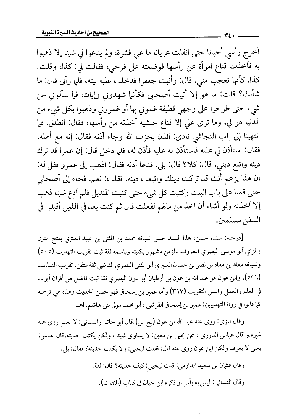 [درجته: سنده حسن، هذا السند: حسن شيخه محمَّد بن المثنى بن عبيد العنزي بفتح النون والزاي أبو موسى البصري المعروف بالزمن مشهور بكنيته وباسمه ثقة ثبت تقريب التهذيب (505) وشيخه معاذ بن معاذ بن نصر بن حسان العنبرى أبو المثنى البصري القاضي ثقة مئقن، تقريب التهذيب (536). وابن عون هو عبد الله بن عون بن أرطبان أبو عون البصري ثقة ثبت فاضل من أقران أيوب في العلم والعمل والسن التقريب (317) وأما عمير بن إسحاق فهو حسن الحديث وهذه هي ترجمته كما قالوا في رواة التهذيبين: عمير بن إسحاق القرشى، أبو محمد مولى بني هاشم. أهـ