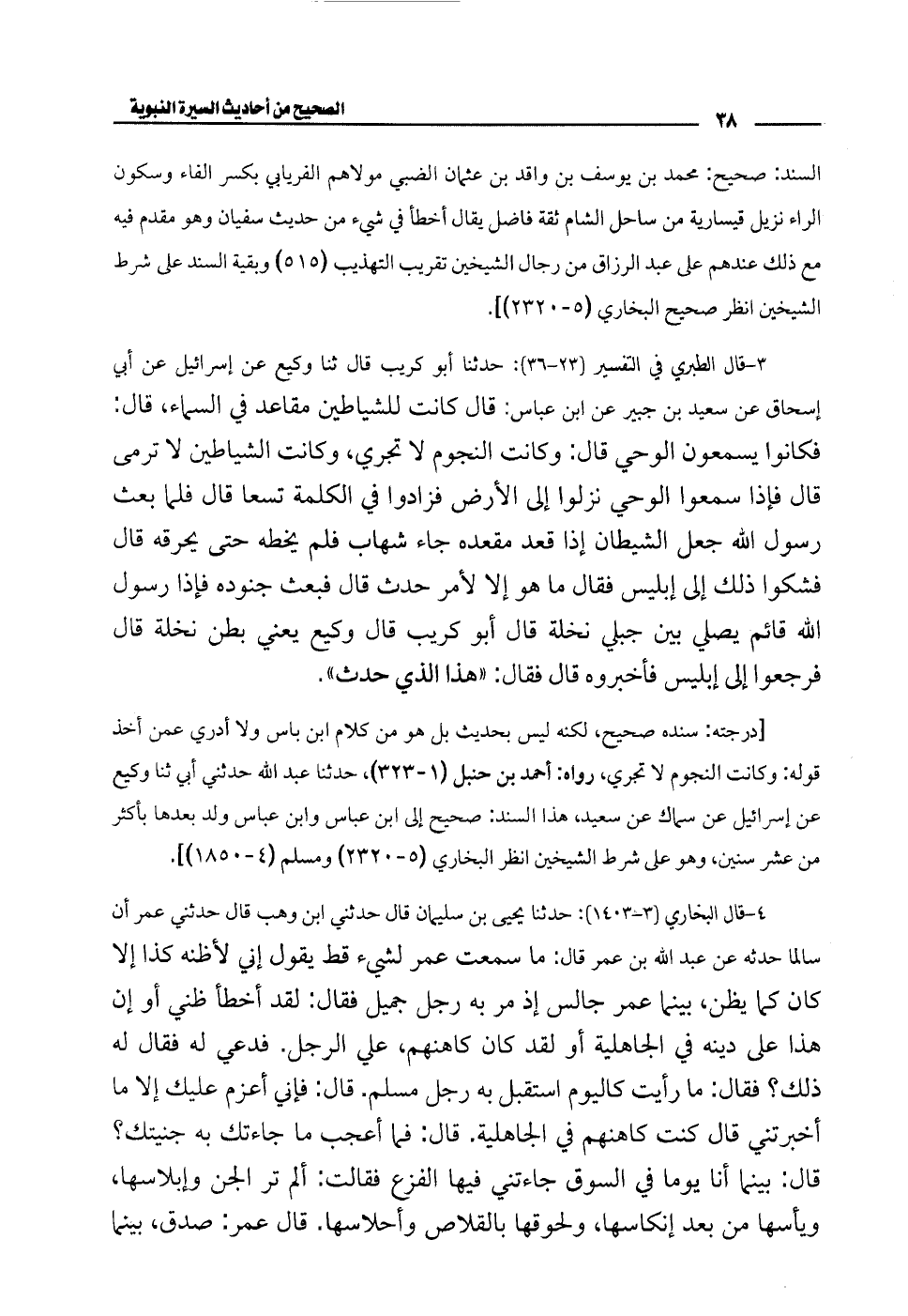 3 - قال الطبري في التفسير (23 - 36): حدثنا أبو كريب قال ثنا وكيع عن إسرائيل عن أبي إسحاق عن سعيد بن جبير عن ابن عباس: قال كانت للشياطين مقاعد في السماء، قال: فكانوا يسمعون الوحي قال: وكانت النجوم لا تجري، وكانت الشياطين لا ترمى قال فإذا سمعوا الوحي نزلوا إلى الأرض فزادوا في الكلمة تسعًا قال فلما بعث رسول الله جعل الشيطان إذا قعد مقعده جاء شهاب فلم يخطه حتى يحرقه قال فشكوا ذلك إلى إبليس فقال ما هو إلا لأمر حدث قال فبعث جنوده فإذا رسول الله قائم يصلي بين جبلي نخلة قال أبو كريب قال وكيع يعني بطن نخلة قال فرجعوا إلى إبليس فأخبروه قال فقال: "هذا الذي حدث".