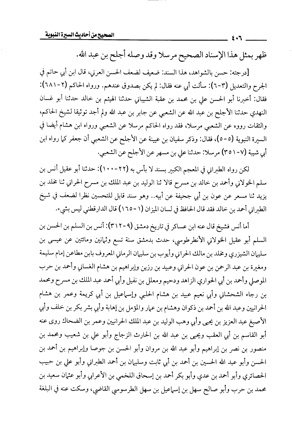 [درجته: حسن بالشواهد، هذا السند: ضعيف لضعف الحسن العرني، قال ابن أبي حاتم في الجرح والتعديل (3 - 6): سألت أبي عنه فقال: لم يكن بصدوق عندهم. ورواه الحاكم (2 - 681): فقال: أخبرنا أبو الحسن علي بن محمَّد بن عقبة الشيباني حدثنا الهيثم بن خالد حدثنا أبو غسان النهدي حدثنا الأجلح بن عبد الله عن الشعبي عن جابر بن عبد الله ولم أجد توثيقًا لشيخ الحاكم، والثقاث رووه عن الشعبي مرسلًا، فقد رواه الحاكم مرسلًا عن الشعبي ورواه ابن هشام أيضًا في السيرة النبوية (5 - 5)، فقال: وذكر سفيان بن عيينة عن الأجلح عن الشعبي أن جعفر كما رواه ابن أبي شيبة (7 - 351) مرسلًا: حدثنا علي بن مسهر عن الأجلح عن الشعبي.