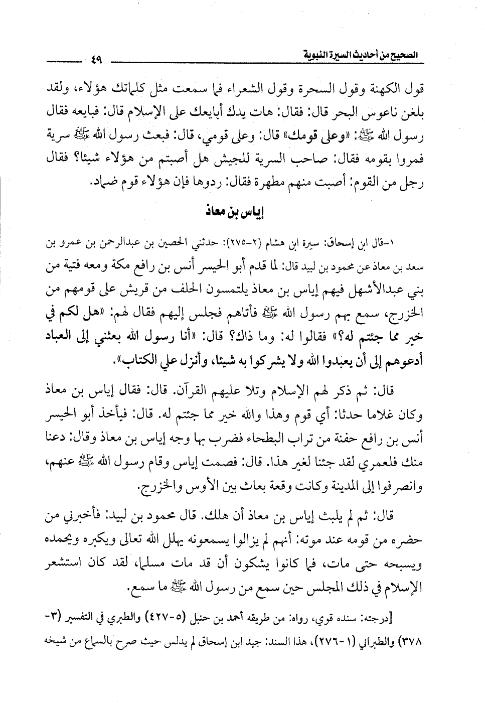 [درجته: سنده قوي، رواه: من طريقه أحمد بن حنبل (5 - 427) والطبريُّ في التفسير (3 - 378) والطبرانيُّ (1 - 276)، هذا السند: جيد ابن إسحاق لم يدلس حيث صرح بالسماع من شيخه
