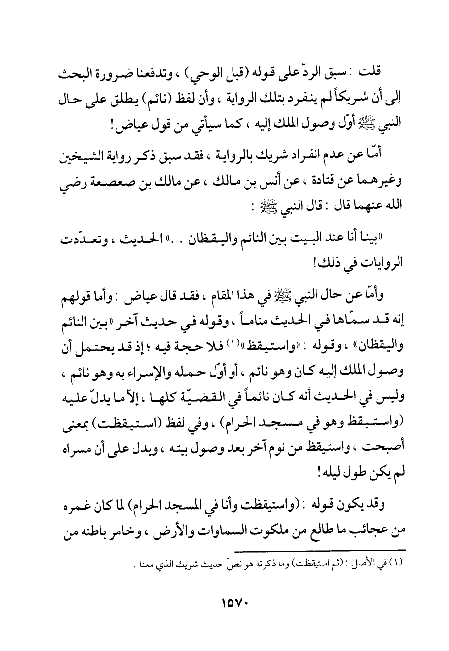 قلت: سبق الردّ على قوله (قبل الوحي)، وتدفعنا ضرورة البحث إلى أن شريكًا لم ينفرد بتلك الرواية، وأن لفظ (نائم) يطلق على حال النبي -صلى الله عليه وسلم- أوّل وصول الملك إليه، كما سيأتي من قول عياض!