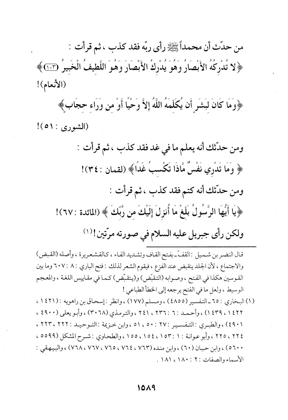 (¬1) البخاري: 65 - التفسير (4855)، ومسلم (177)، وانظر: إسحاق بن راهويه: (1421، 1422، 1439)، وأحمد: 6: 236، 241، والترمذي (3068)، وأبو يعلى (4900، 4901)، والطبري: التفسير: 27: 50، 51، وابن خزيمة: التوحيد: 222، 223، 224، 225، وأبو عوانة: 1: 153، 154، 155، والطحاوي: شرح المشكل (5599، 5600)، وابن حبّان (60)، وابن منده (763، 764، 765، 767، 768)، والبيهقيّ: الأسماء والصفات: 2: 180، 181.