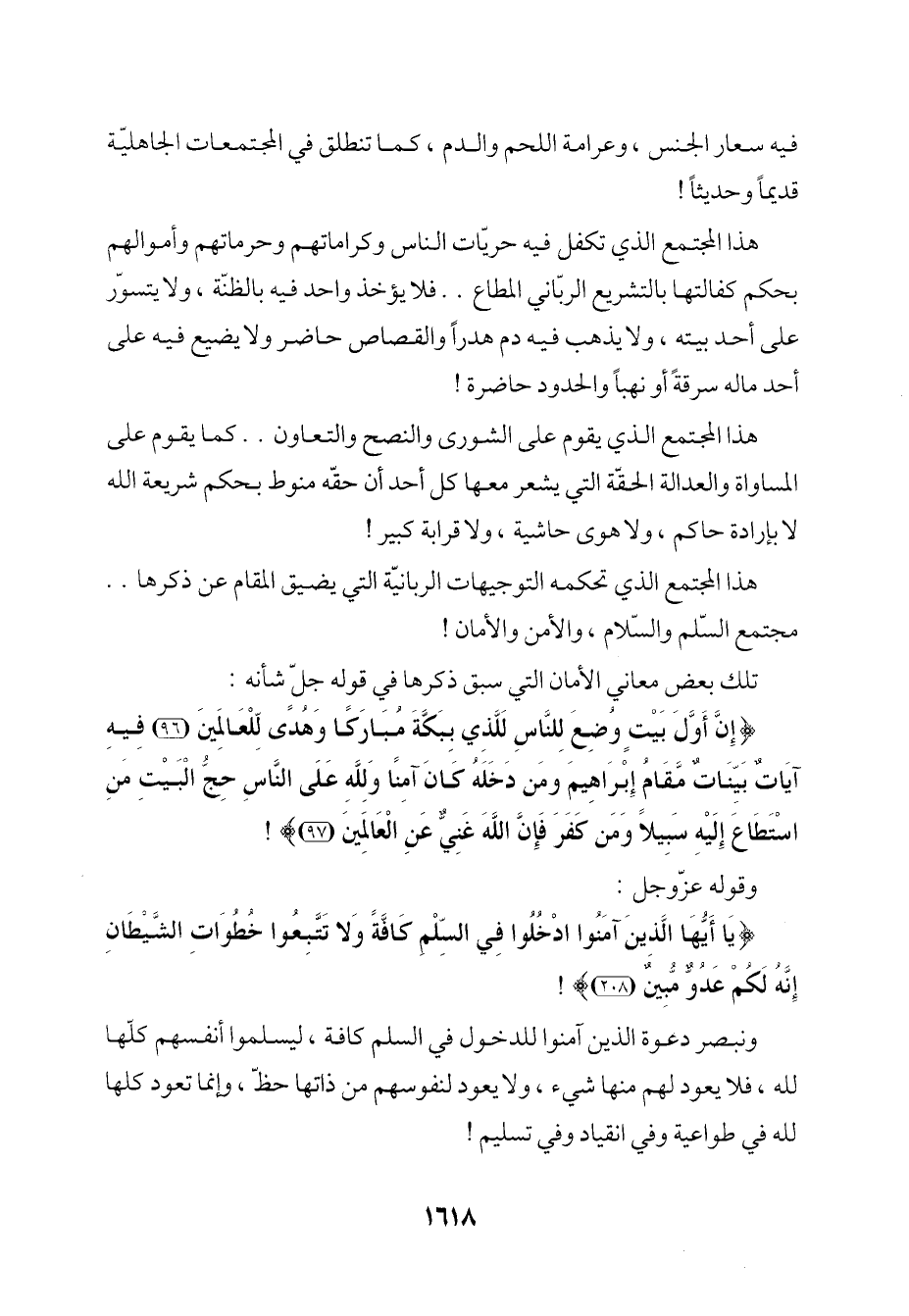 هذا المجتمع الذي تحكمه التوجيهات الربانيّة التي يضيق المقام عن ذكرها .. مجتمع السّلم والسّلام، والأمن والأمان!