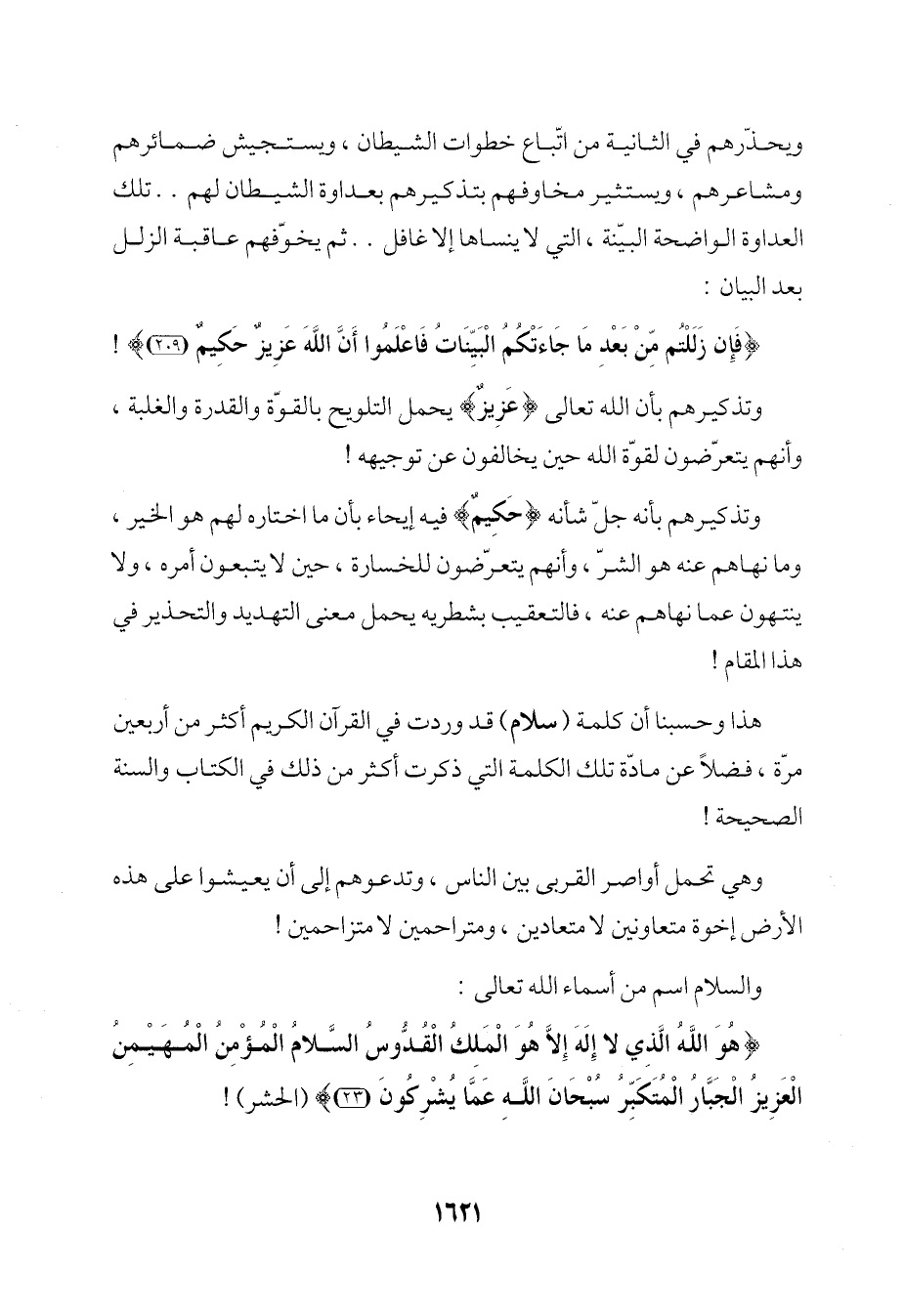 هذا وحسبنا أن كلمة (سلام) قد وردت في القرآن الكريم أكثر من أربعين مرّة، فضلًا عن مادّة تلك الكلمة التي ذكرت أكثر من ذلك في الكتاب والسنة الصحيحة!