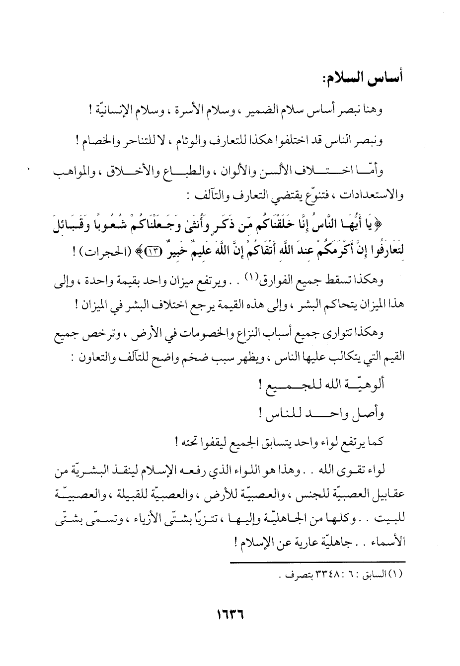 وهنا نبصر أساس سلام الضمير، وسلام الأسرة، وسلام الإنسانيّة!
