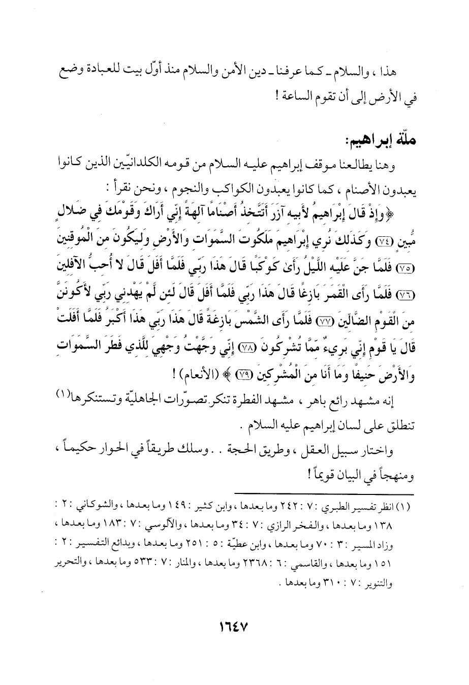 إنه مشهد رائع باهر، مشهد الفطرة تنكر تصوّرات الجاهليّة وتستنكرها (¬1) تنطلق على لسان إبراهيم عليه السلام.