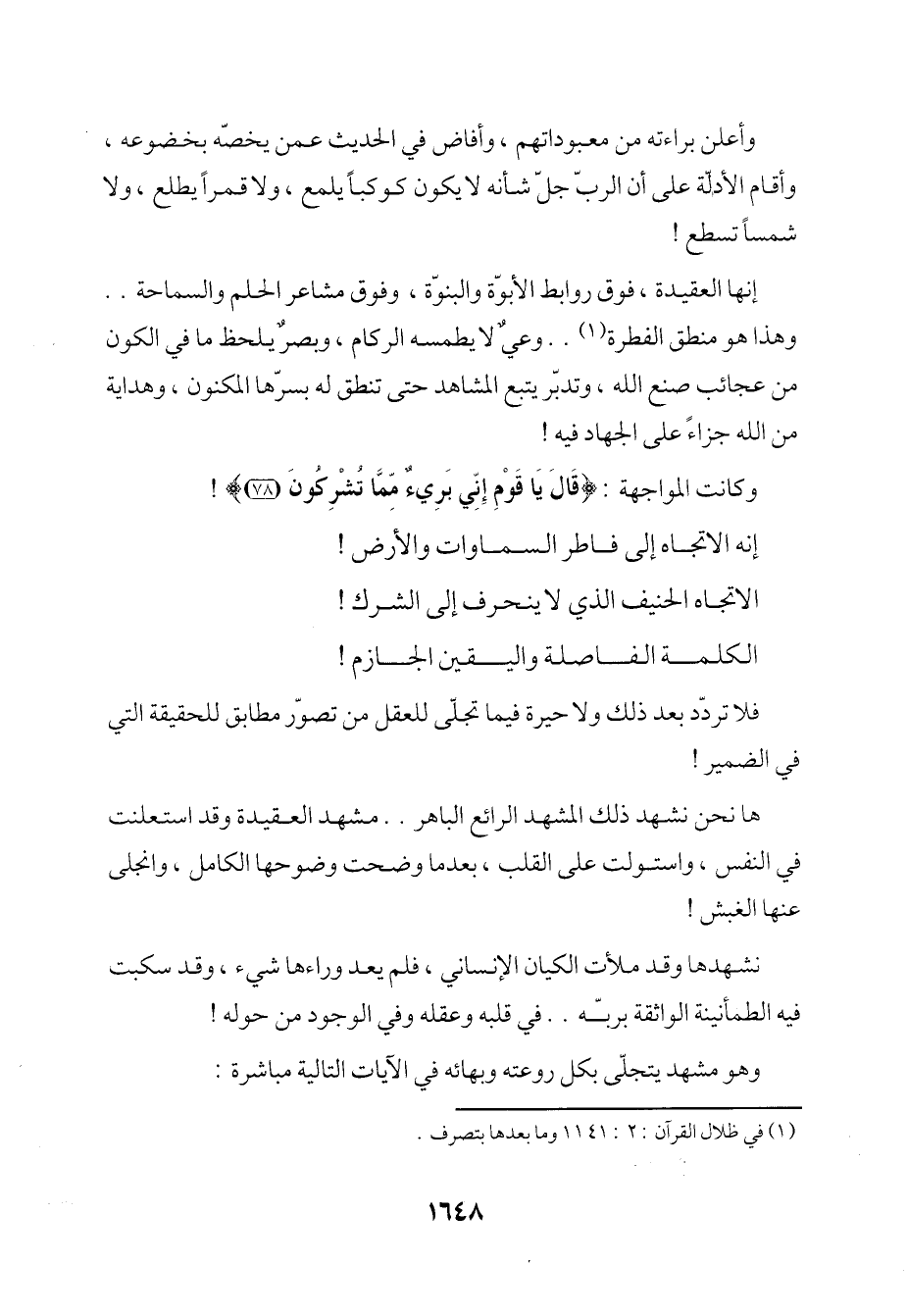 وأعلن براءته من معبوداتهم، وأفاض في الحديث عمن يخصّه بخضوعه، وأقام الأدالة على أن الربّ جلّ شأنه لا يكون كوكبًا يلمع، ولا قمرًا يطلع، ولا شمسًا تسطع!