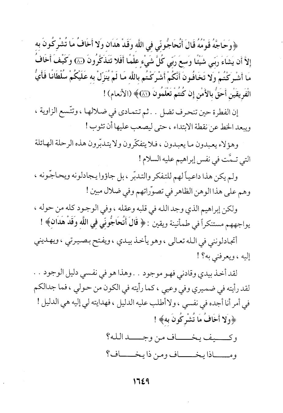 ولكن إبراهيم الذي وجد الله في قلبه وعقله، وفي الوجود كله من حوله، يواجههم مستنكرًا في طمأنينة ويقين: {قَالَ أَتُحَاجُّونِّي فِي اللَّهِ وَقَدْ هَدَانِ}!