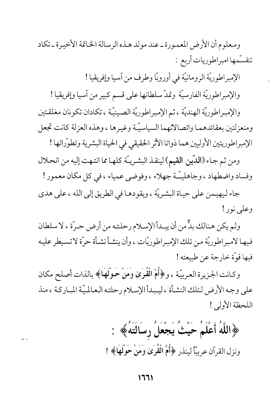ومعلوم أن الأرض المعمورة -عند مولد هذه الرسالة الخاتمة الأخيرة- تكاد تتقسّمها امبراطوريات أربع: