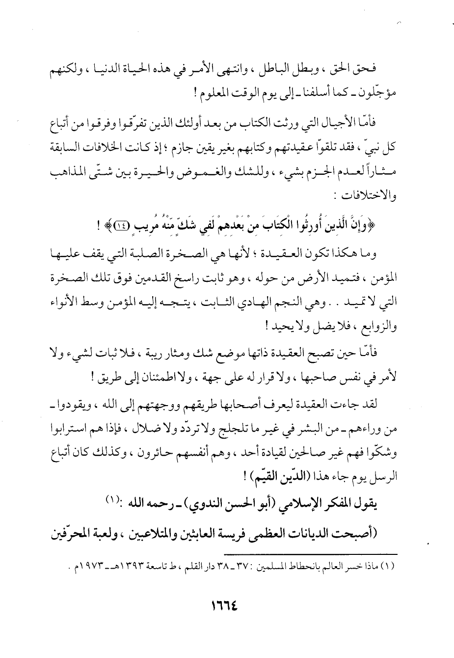 يقول المفكر الإِسلامي (أبو الحسن الندوي) - رحمه الله: (¬1)