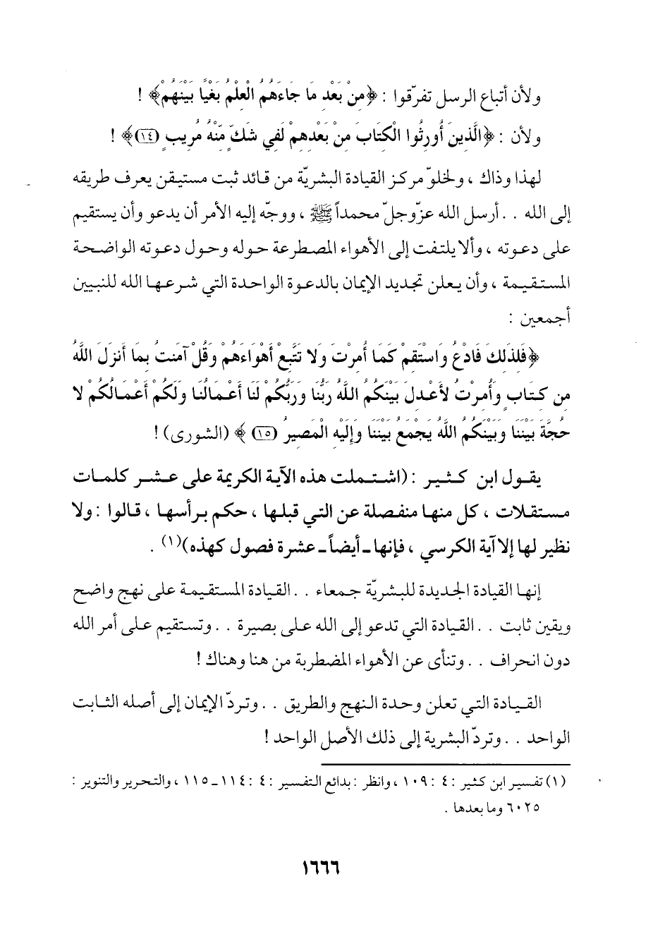 إنها القيادة الجديدة للبشريّة جمعاء .. القيادة المستقيمة على نهج واضح ويقين ثابت .. القيادة التي تدعو إلى الله على بصيرة .. وتستقيم على أمر الله دون انحراف .. وتنأى عن الأهواء المضطربة من هنا وهناك!