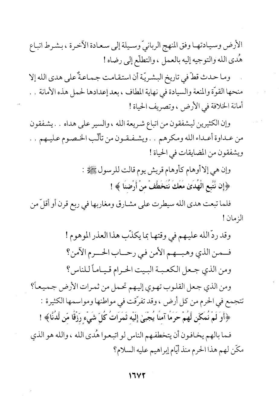 ومن الذي جعل القلوب تهوي إليهم تحمل من ثمرات الأرض جميعاً؟ تتجمع في الحرم من كل أرض، وقد تفرّقت في مواطنها ومواسمها الكثيرة: