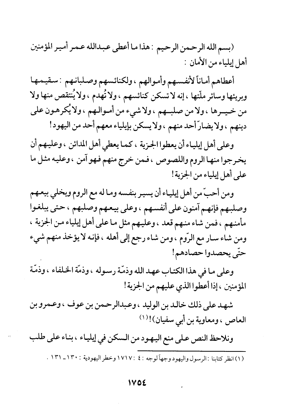 (بِسْمِ اللَّهِ الرَّحْمَنِ الرَّحِيمِ: هذا ما أعطى عبد الله عمر أمير المؤمنين أهل إيلياء من الأمان: