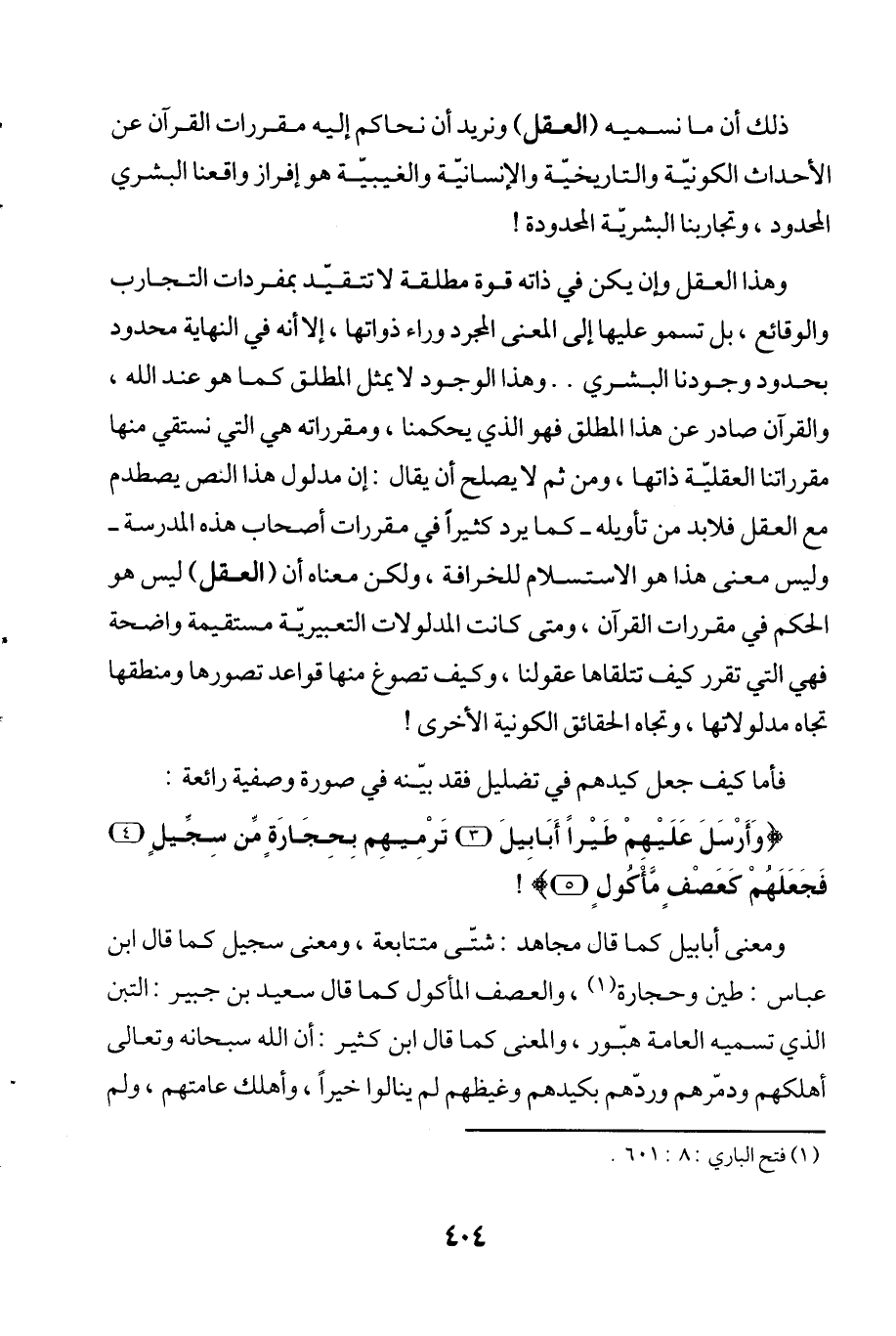 وهذا العقل وإن يكن في ذاته قوة مطلقة لا تتقيّد بمفردات التجارب والوقائع، بل تسمو عليها إلى المعنى المجرد وراء ذواتها، إلا أنه في النهاية محدود بحدود وجودنا البشري .. وهذا الوجود لا يمثل المطلق كما هو عند الله، والقرآن صادر عن هذا المطلق فهو الذي يحكمنا، ومقرراته هي التي نستقي منها مقرراتنا العقلية ذاتها، ومن ثم لا يصلح أن يقال: إن مدلول هذا البحر يصطدم مع العقل فلابد من تأويله -كما يرد كثيراً في مقررات أصحاب هذه المدرسة- وليس معنى هذا هو الاستسلام للخرافة، ولكن معناه أن (العقل) ليس هو الحكم في مقررات القرآن، ومتى كانت المدلولات التعبيريّة مستقيمة واضحة فهي التي تقرر كيف تتلقاها عقولنا، وكيف تصوغ منها قواعد تصورها ومنطقها تجاه مدلولاتها، وتجاه الحقائق الكونية الأخرى!