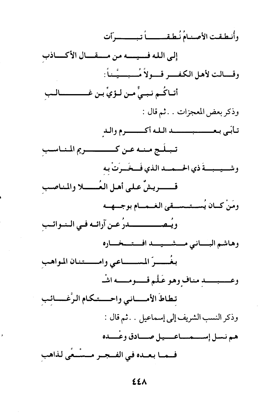 وأُنطقت الأصنامُ نُطقاً تبرّأت ... إِلى الله فيه من مقال الأكاذبِ