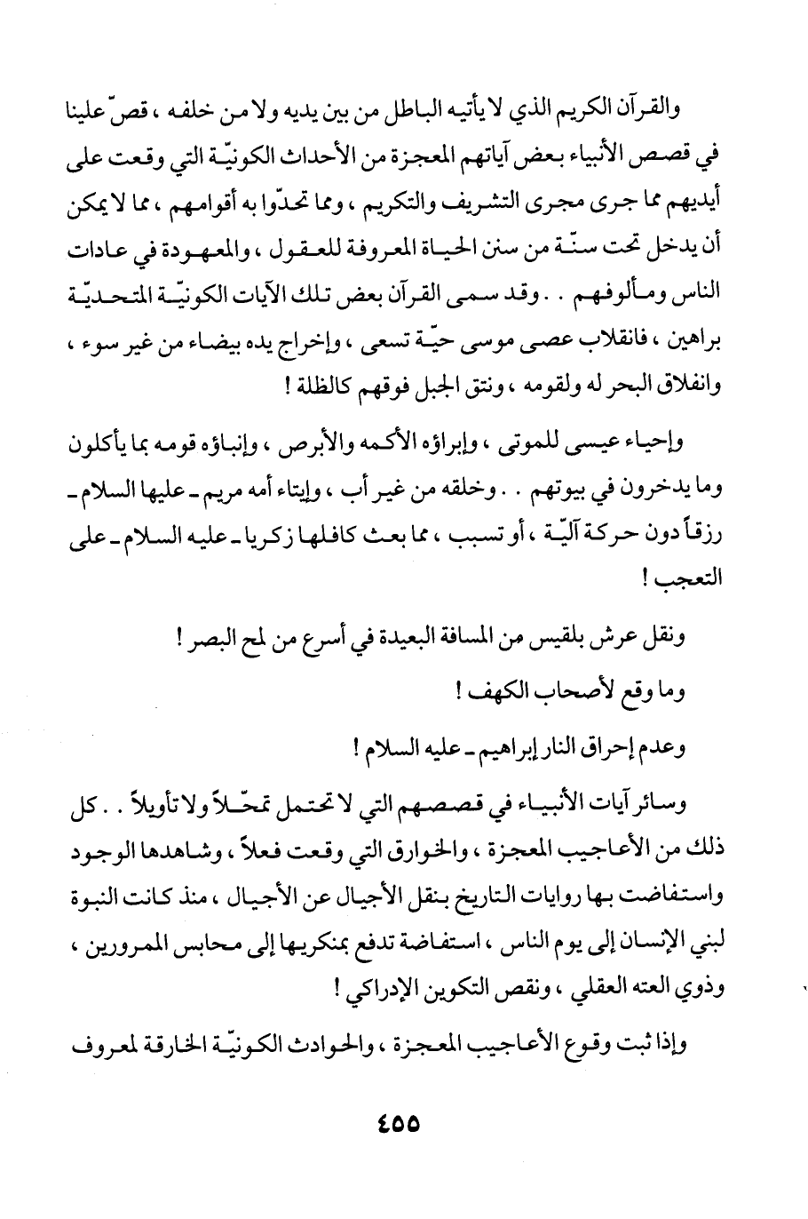 والقرآن الكريم الذي لا يأتيه الباطل من بين يديه ولا من خلفه، قصّ علينا في قصص الأنبياء بعض آياتهم المعجزة من الأحداث الكونيّة التي وقعت على أيديهم مما جرى مجرى التشريف والتكريم، ومما تحدّوا به أقوامهم، مما لا يمكن أن يدخل تحت سنّة من سن الحياة المعروفة للعقول، والمعهودة في عادات الناس ومألوفهم .. وقد سمى القرآن بعض تلك الآيات الكونيّة المتحديّة براهين، فانقلاب عصى موسى حيّة تسعى، وإخراج يده بيضاء من غير سوء، وانفلاق البحر له ولقومه، ونتق الجبل فوقهم كالظلة!