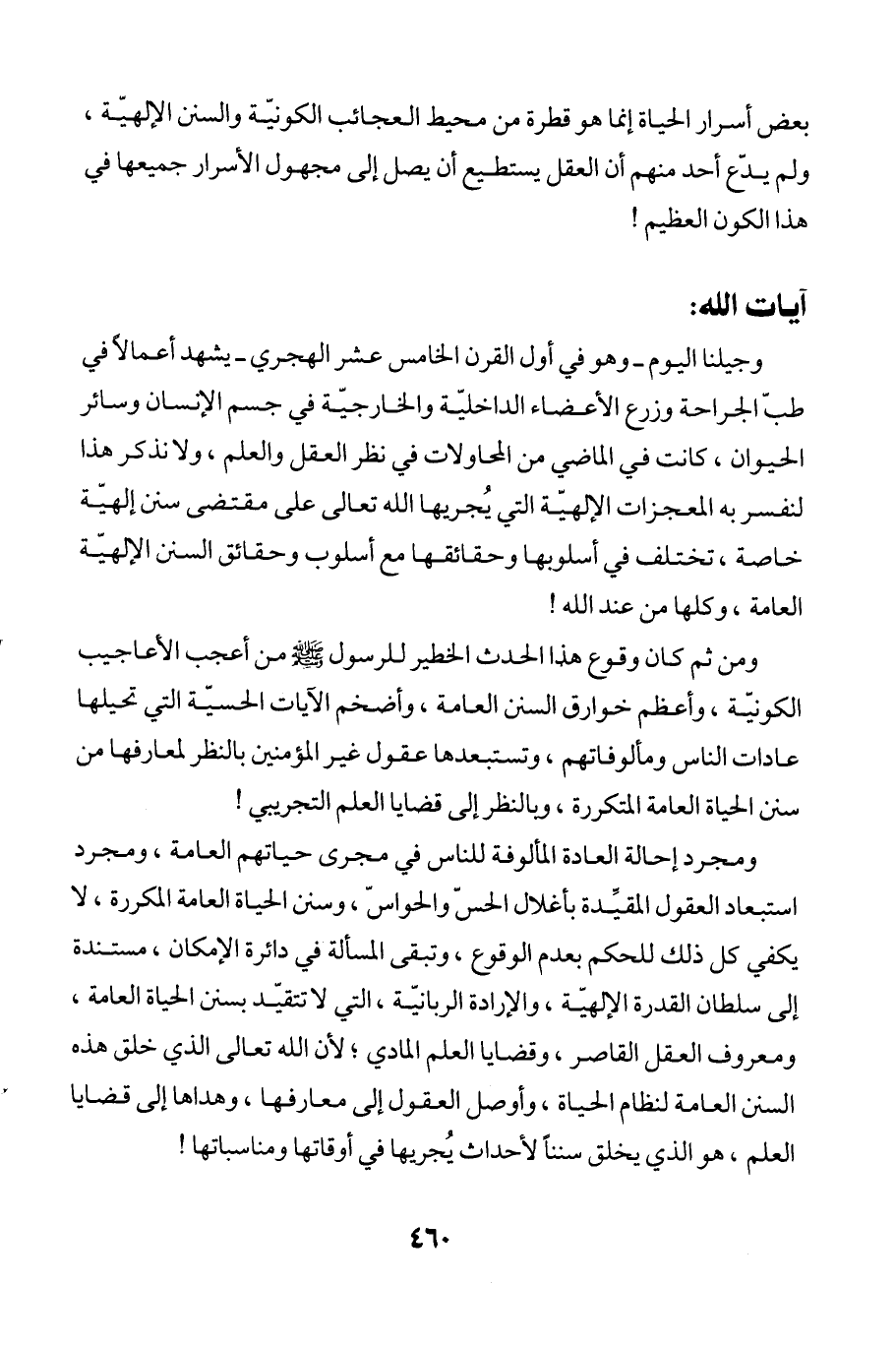 وجيلنا اليوم -وهو في أول القرن الخامس عشر الهجري- يشهد أعمالاً في طبّ الجراحة وزرع الأعضاء الداخليّة والخارجيّة في جسم الإنسان وسائر الحيوان، كانت في الماضي من المحاولات في نظر العقل والعلم، ولا نذكر هذا لنفسر به المعجزات الإلهيّة التي يُجريها الله تعالى على مقتضى سنن إلهيّة خاصة، تختلف في أسلوبها وحقائقها مع أسلوب وحقائق السنن الإلهيّة العامة، وكلها من عند الله!