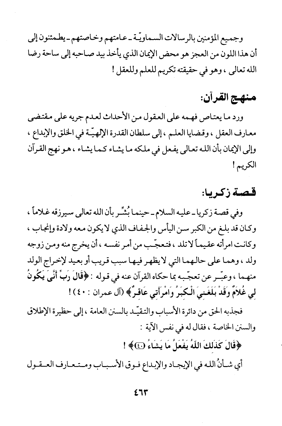 ورد ما يعتاص فهمه على العقول من الأحداث لعدم جريه على مقتضى معارف العقل، وقضايا العلم، إلى سلطان القدرة الإلهيّة في الخلق والإبداع، وإلى الإيمان بأن الله تعالى يفعل في ملكه ما يشاء كما يشاء، هو نهج القرآن الكريم!