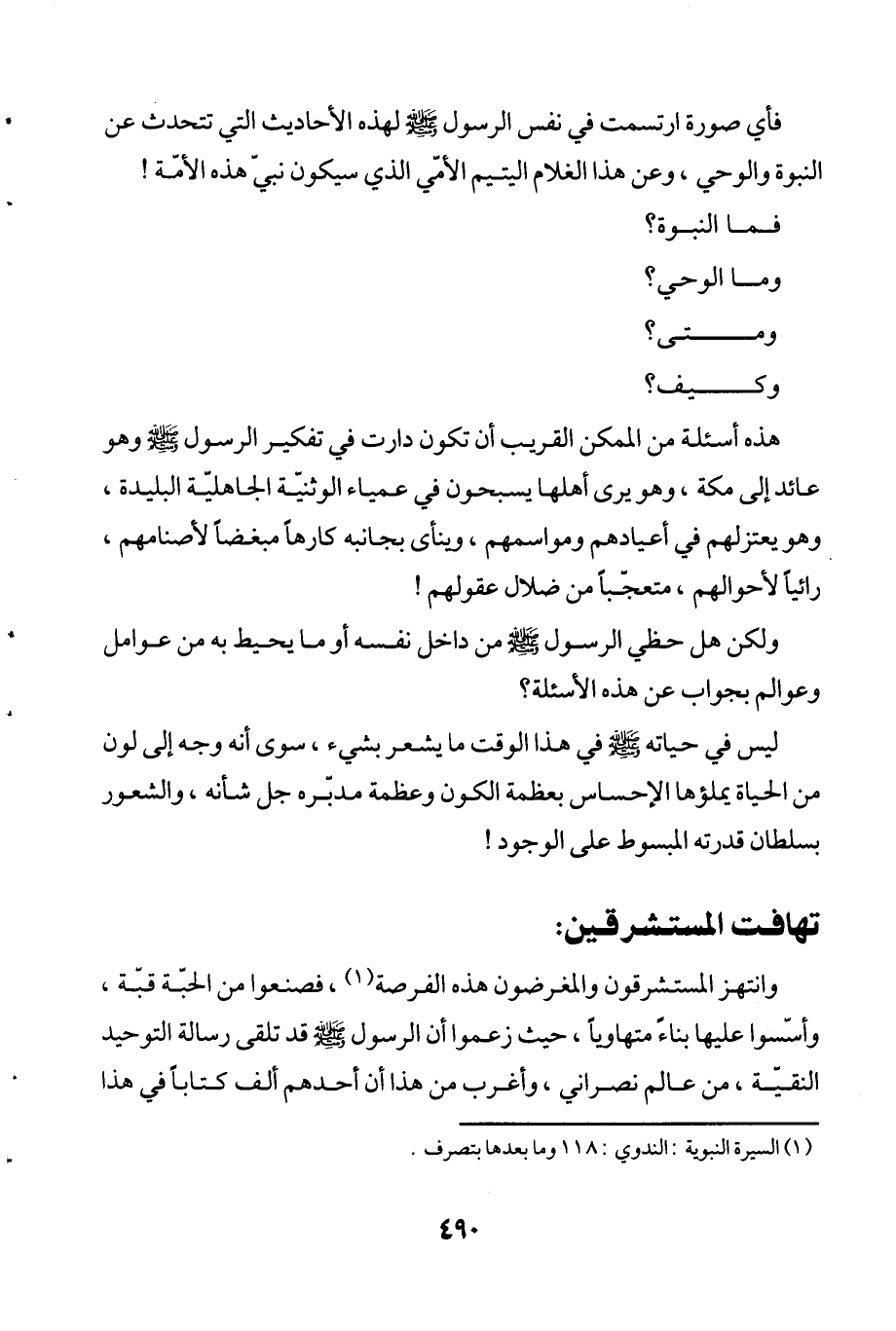 هذه أسئلة من الممكن القريب أن تكون دارت في تفكير الرسول - صلى الله عليه وسلم - وهو عائد إلى مكة، وهو يرى أهلها يسبحون في عمياء الوثنيّة الجاهليّة البليدة، وهو يعتزلهم في أعيادهم ومواسمهم، وينأى بجانبه كارهاً مبغضاً لأصنامهم، رائياً لأحوالهم، متعجّباً من ضلال عقولهم!