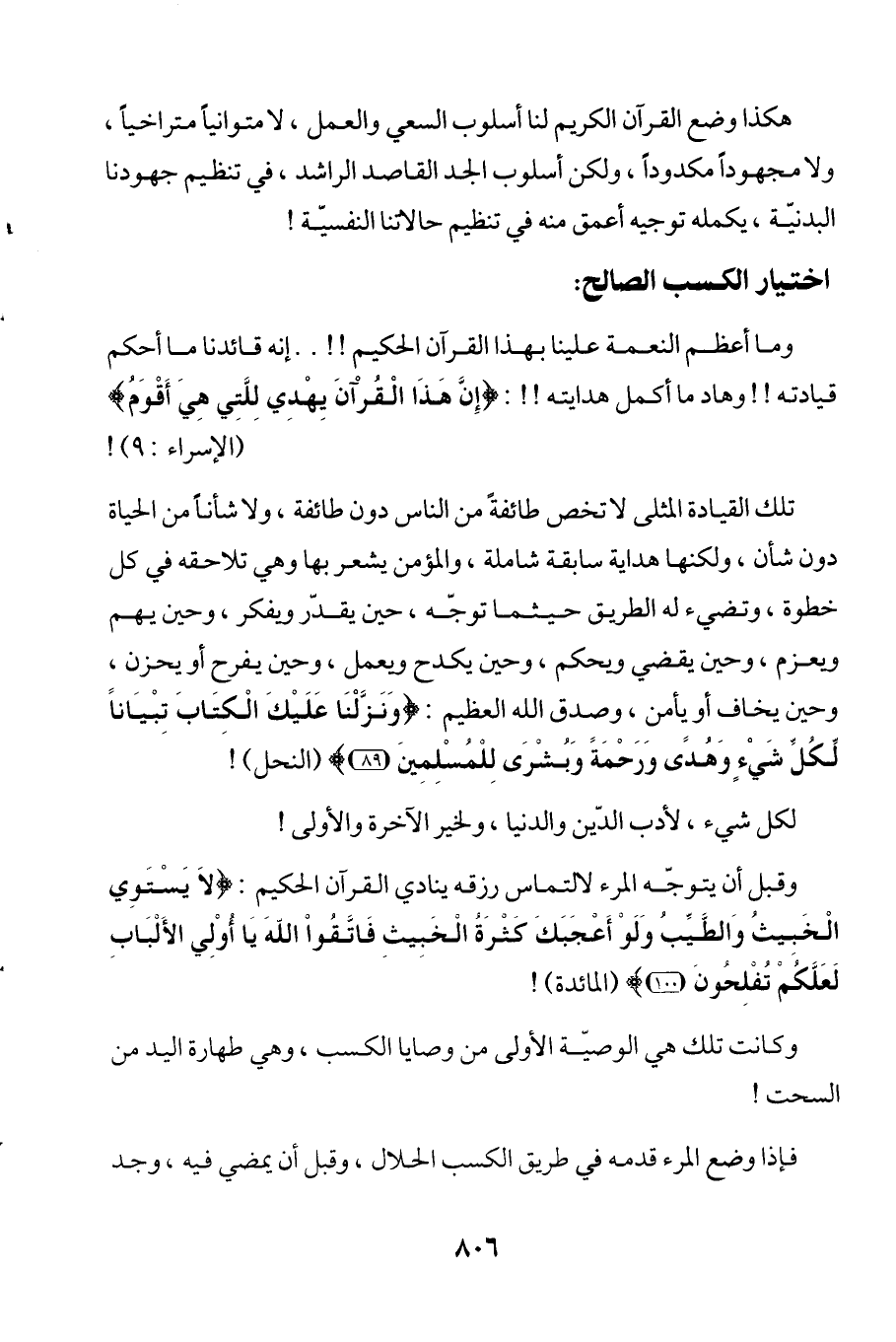 هكذا وضع القرآن الكريم لنا أسلوب السعي والعمل، لا متوانياً متراخياً، ولا مجهوداً مكدوداً، ولكن أسلوب الجد القاصد الراشد، في تنظيم جهودنا البدنيّة، يكمله توجيه أعمق منه في تنظيم حالاتنا النفسيّة!