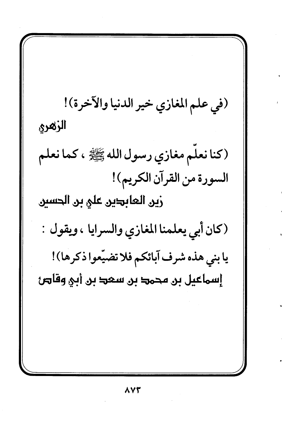 (كان أبي يعلمنا المغازي والسرايا, ويقول: