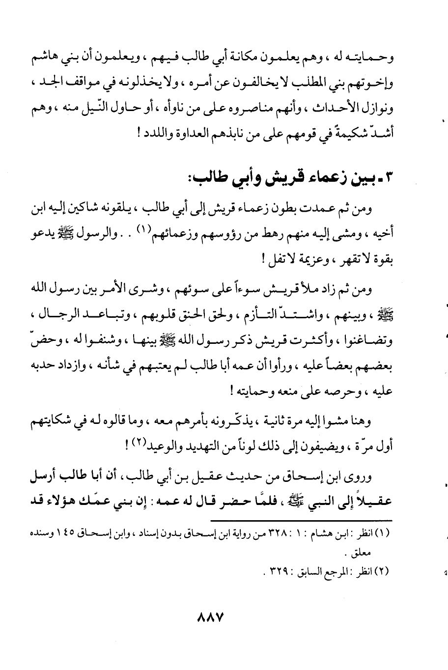 وحمايته له، وهم يعلمون مكانة أبي طالب فيهم، ويعلمون أن بني هاشم وإخوتهم بني المطلب لا يخالفون عن أمره، ولا يخذلونه في مواقف الجد، ونوازل الأحداث، وأنهم مناصروه على من ناوأه، أو حاول النّيل منه، وهم أشدّ شكيمةً في قومهم على من نابذهم العداوة واللدد!