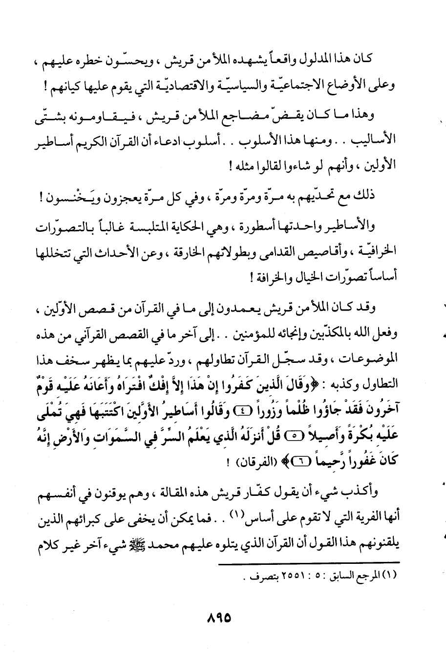 وقد كان الملأ من قريش يعمدون إلى ما في القرآن من قصص الأوّلين، وفعل الله بالمكذّبين وإنجائه للمؤمنين .. إلى آخر ما في القصص القرآني من هذه "الموضوعات" وقد سجّل القرآن تطاولهم، وردّ عليهم بما يظهر سخف هذا التطاول وكذبه: {وَقَالَ الَّذِينَ كَفَرُوا إِنْ هَذَا إِلَّا إِفْكٌ افْتَرَاهُ وَأَعَانَهُ عَلَيْهِ قَوْمٌ آخَرُونَ فَقَدْ جَاءُوا ظُلْمًا وَزُورًا (4) وَقَالُوا أَسَاطِيرُ الْأَوَّلِينَ اكْتَتَبَهَا فَهِيَ تُمْلَى عَلَيْهِ بُكْرَةً وَأَصِيلًا (5) قُلْ أَنْزَلَهُ الَّذِي يَعْلَمُ السِّرَّ فِي السَّمَاوَاتِ وَالْأَرْضِ إِنَّهُ كَانَ غَفُورًا رَحِيمًا (6)} (الفرقان)!