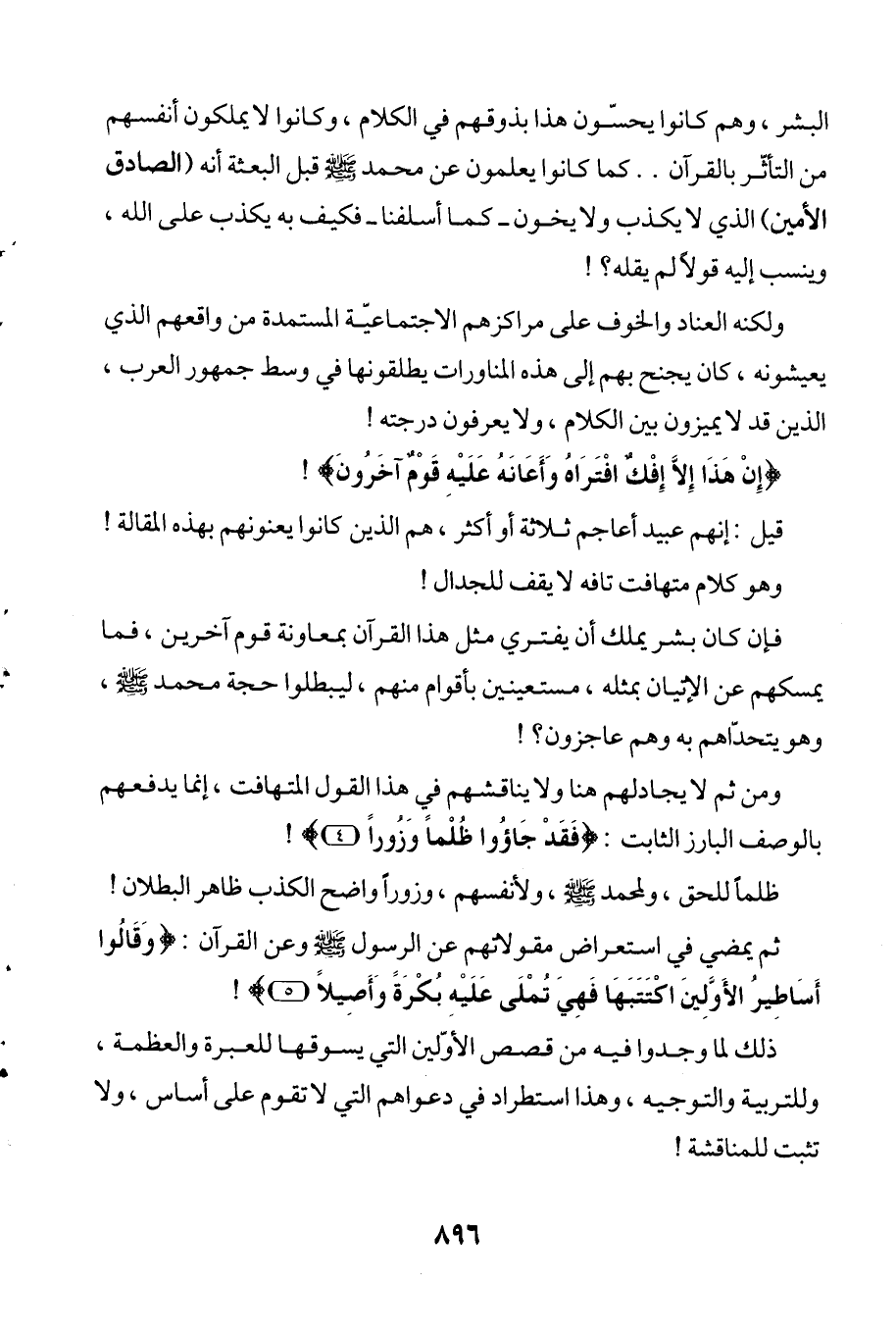 البشر، وهم كانوا يحسّون هذا بذوقهم في الكلام، وكانوا لا يملكون أنفسهم من التأثّر بالقرآن .. كما كانوا يعلمون عن محمد - صلى الله عليه وسلم - قبل البعثة أنه (الصادق الأمين) الذي لا يكذب ولا يخون -كما أسلفنا- فكيف به يكذب على الله، وينسب إليه قولاً لم يقله؟!