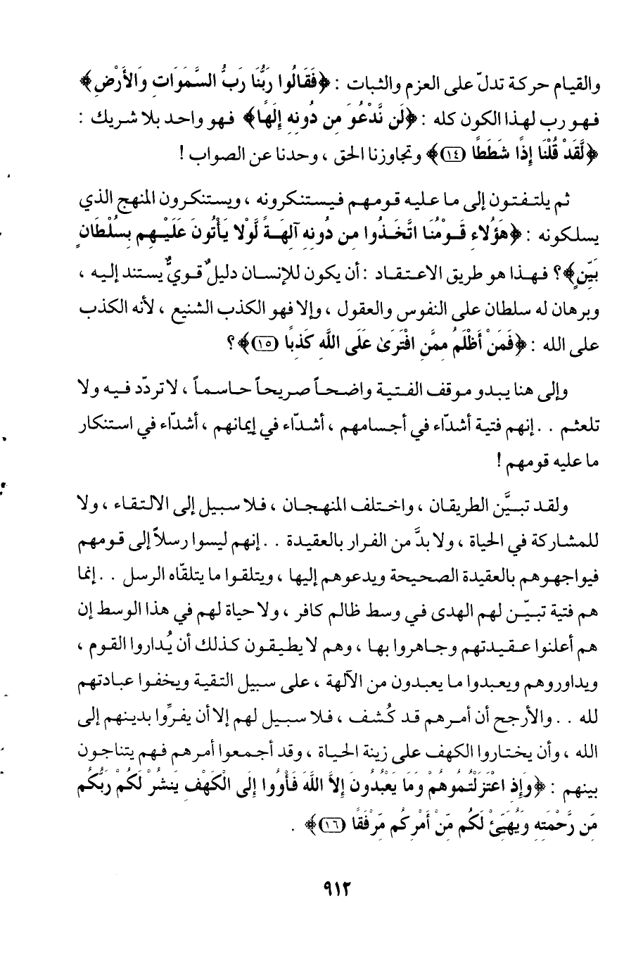 والقيام حركة تدل على العزم والثبات: {فَقَالُوا رَبُّنَا رَبُّ السَّمَاوَاتِ وَالْأَرْضِ} فهو رب لهذا الكون كله: {لَنْ نَدْعُوَ مِنْ دُونِهِ إِلَهًا} فهو واحد بلا شريك: {لَقَدْ قُلْنَا إِذًا شَطَطًا (14)} وتجاوزنا الحق، وحدنا عن الصواب!