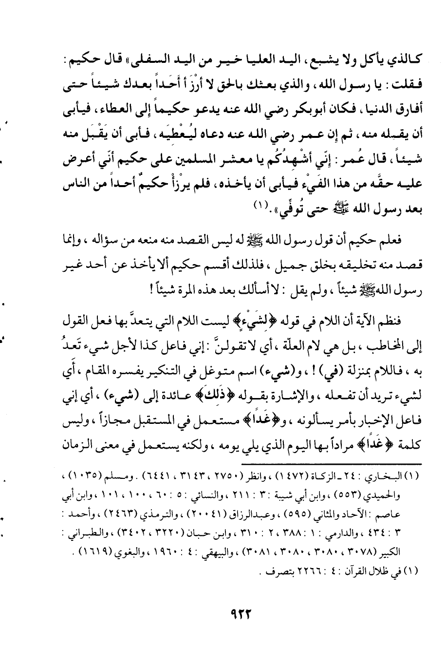 فعلم حكيم أن قول رسول الله - صلى الله عليه وسلم - له ليس القصد منه منعه من سؤاله، وإنما قصد منه تخليقه بخلق جميل، فلذلك أقسم حكيم ألا يأخذ عن أحد غير رسول الله - صلى الله عليه وسلم - شيئاً، ولم يقل: لا أسألك بعد هذه المرة شيئاً!