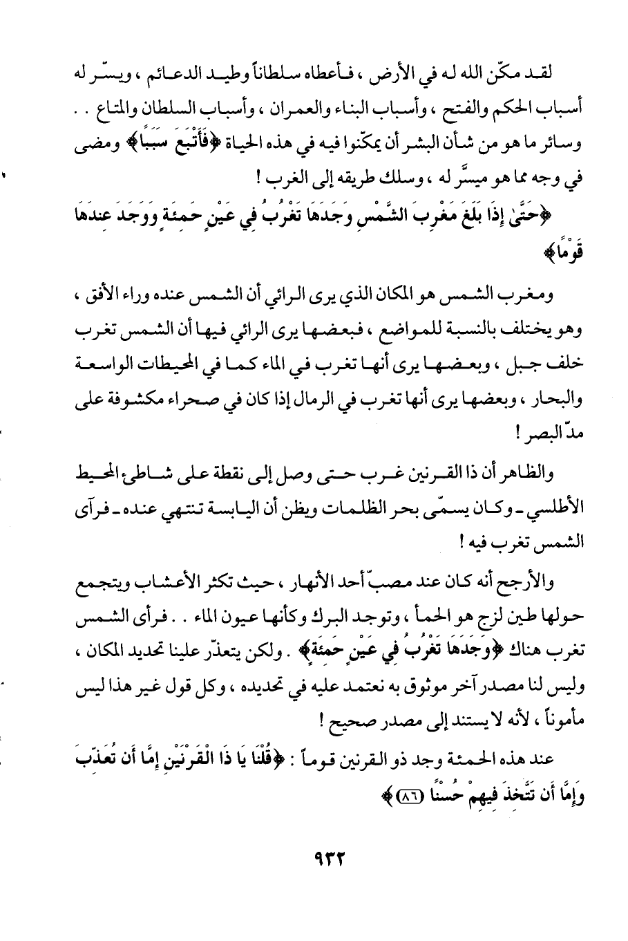 {حَتَّى إِذَا بَلَغَ مَغْرِبَ الشَّمْسِ وَجَدَهَا تَغْرُبُ فِي عَيْنٍ حَمِئَةٍ وَوَجَدَ عِنْدَهَا قَوْمًا}