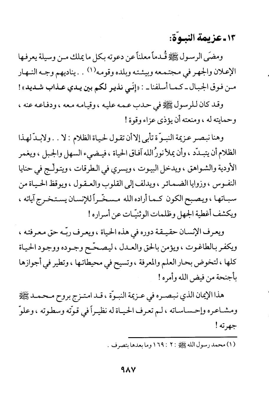 هذا الإيمان الذي نبصره في عزيمة النبوّة، قد امتزج بروح محمَّد - صلى الله عليه وسلم - ومشاعره وإحساساته، لم تعرف الحياة له نظيراً في قوّته وسطوته، وعلوّ جهرته!