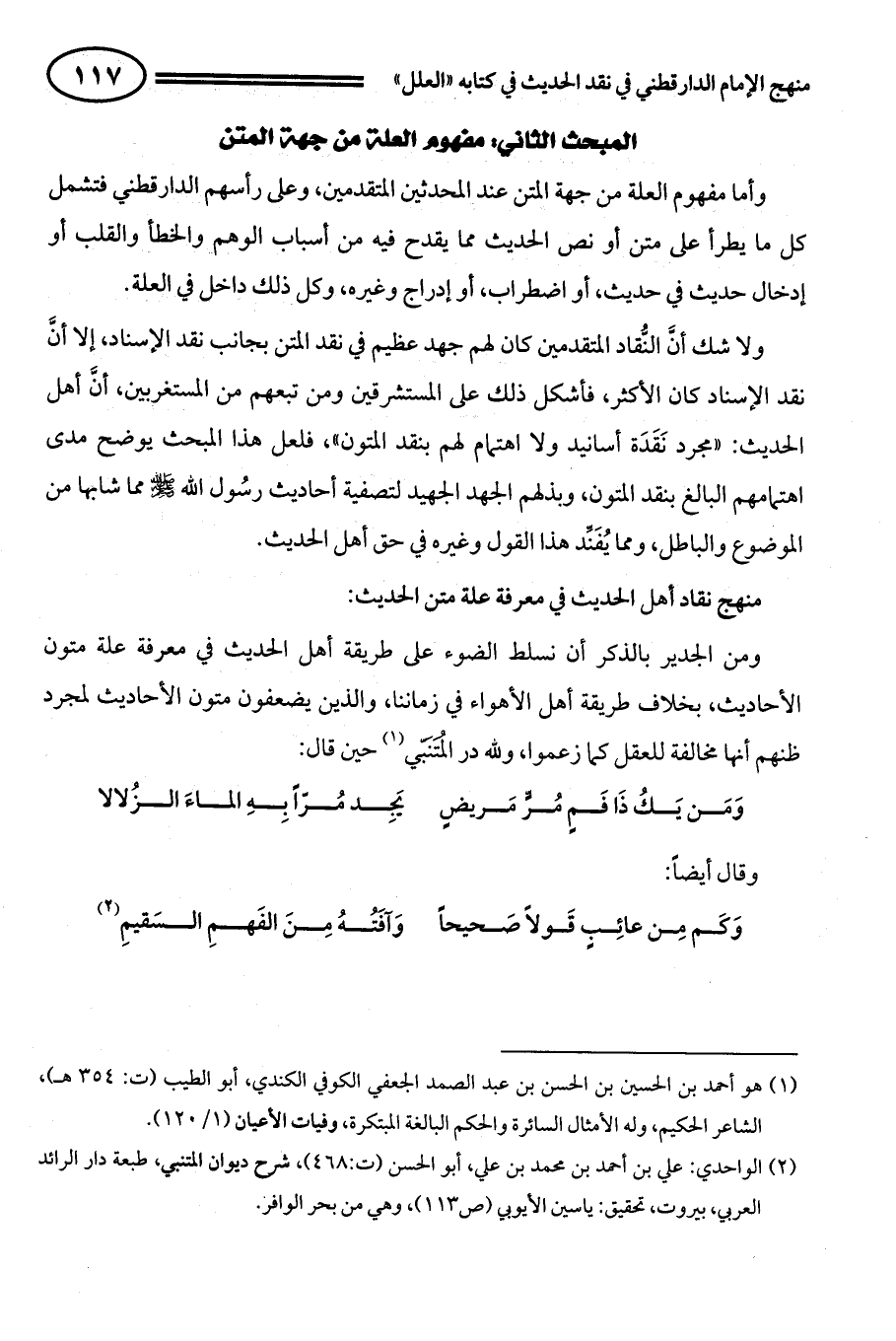 (¬2) الواحدي: علي بن أحمد بن محمد بن علي، أبو الحسن (ت:468)، شرح ديوان المتنبي، طبعة دار الرائد العربي، بيروت، تحقيق: ياسين الأيوبي (ص113)، وهي من بحر الوافر.