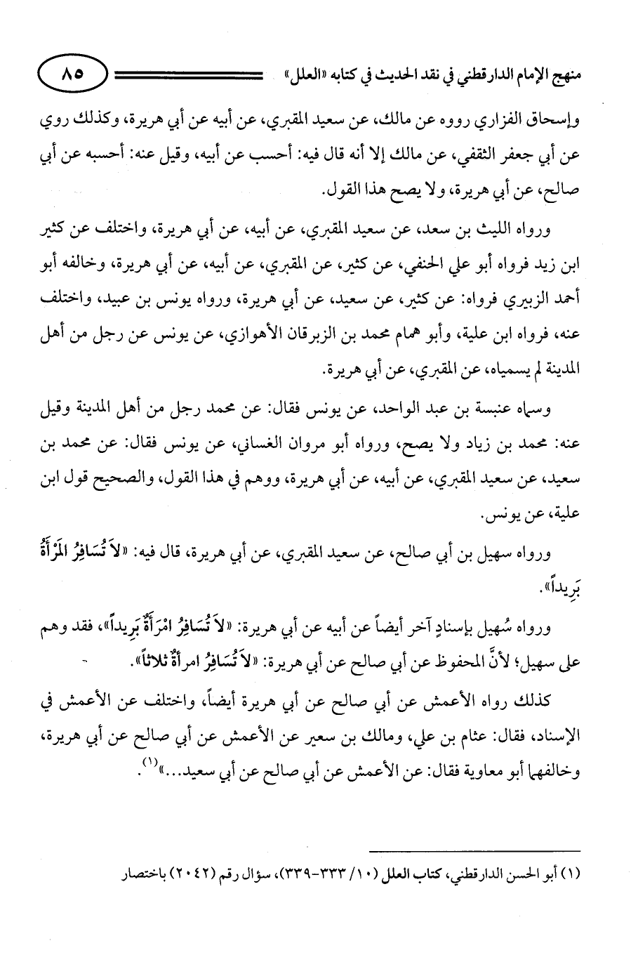 (¬1) أبو الحسن الدارقطني، كتاب العلل (ج10/ ص333 - 339)، سؤال رقم (2042) باختصار