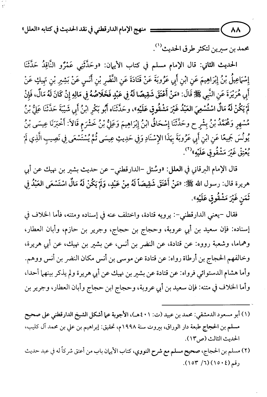 (¬1) أبو مسعود الدمشقي: محمد بن عبيد (ت: 401هـ)، الأجوبة عما أشكل الشيخ الدارقطني على صحيح مسلم بن الحجاج طبعة دار الوراق، بيروت سنة 1998م، تحقيق: إبراهيم بن علي بن محمد آل كليب، الحديث الثالث (ص13).