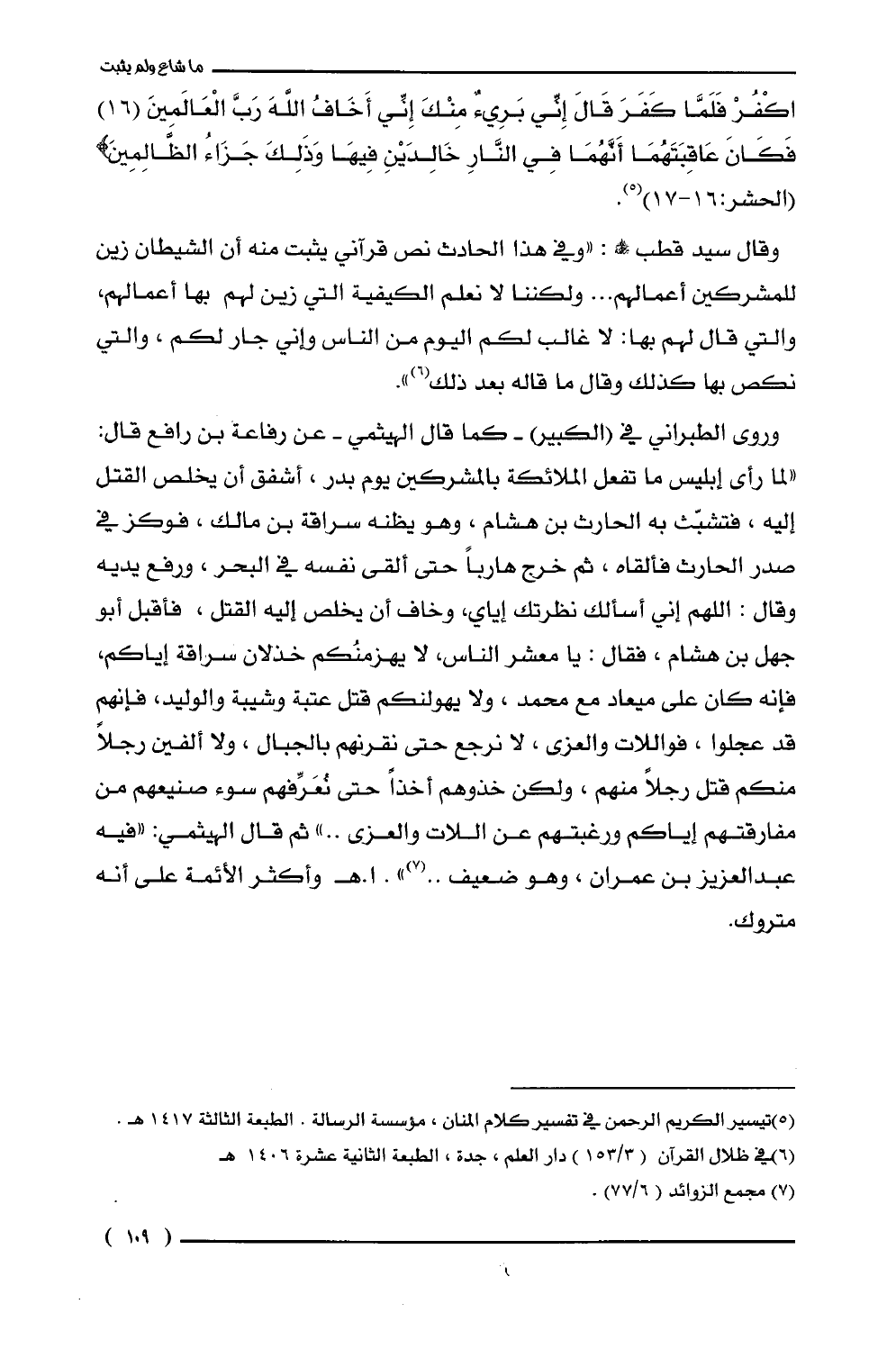 وقال سيد قطب -رحمه الله-: "وفي هذا الحادث نص قراني يثبت منه أن الشيطان زين