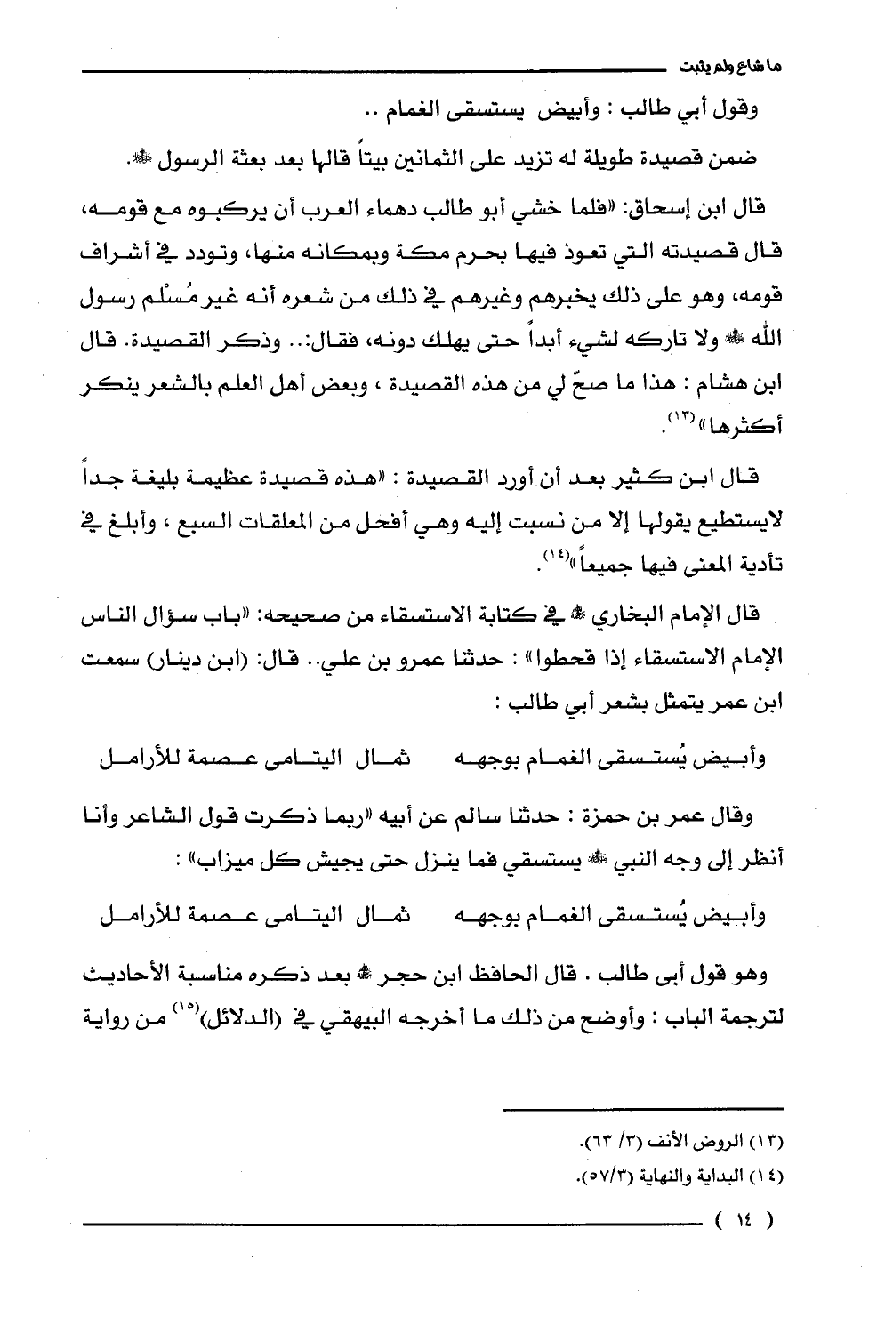 وهو قول أبى طالب. قال الحافظ ابن حجر -رحمه الله- بعد ذكره مناسبة الأحاديث لترجمة الباب: وأوضح من ذلك ما أخرجه البيهقي في (الدلائل) (¬15) من رواية