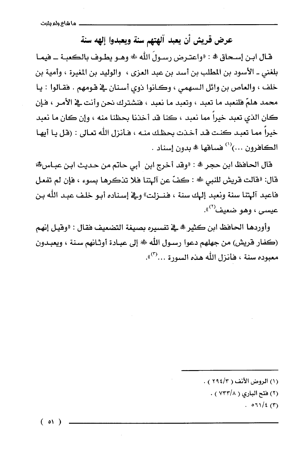 عرض قريش أن يعبد آلهتهم سنة ويعبدوا إلهه سنة