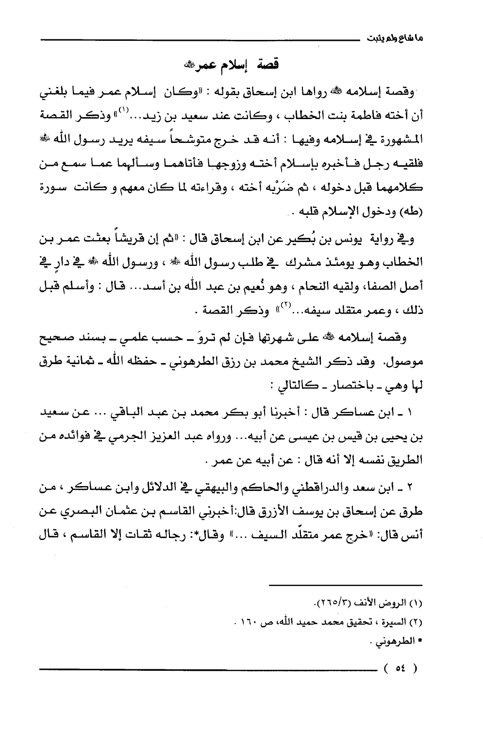 وقصة إسلامه - رضي الله عنه - على شهرتها فإن لم تروَ- حسب علمي - بسند صحيح موصول. وقد ذكر الشيخ محمَّد بن رزق الطرهوني -حفظه الله - ثمانية طرق لها وهي -باختصار- كالتالي: