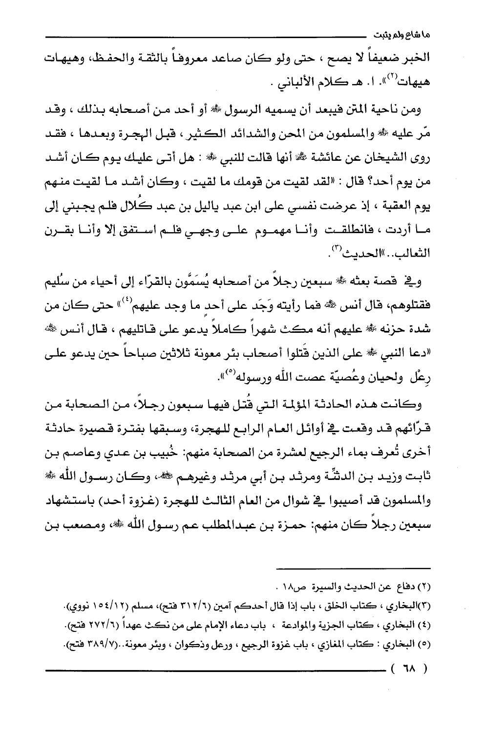 (¬5) البخاري: كتاب المغازي، باب غزوة الرجيع، ورعل وذكوان، وبئر معونة .. (7/ 389 فتح).