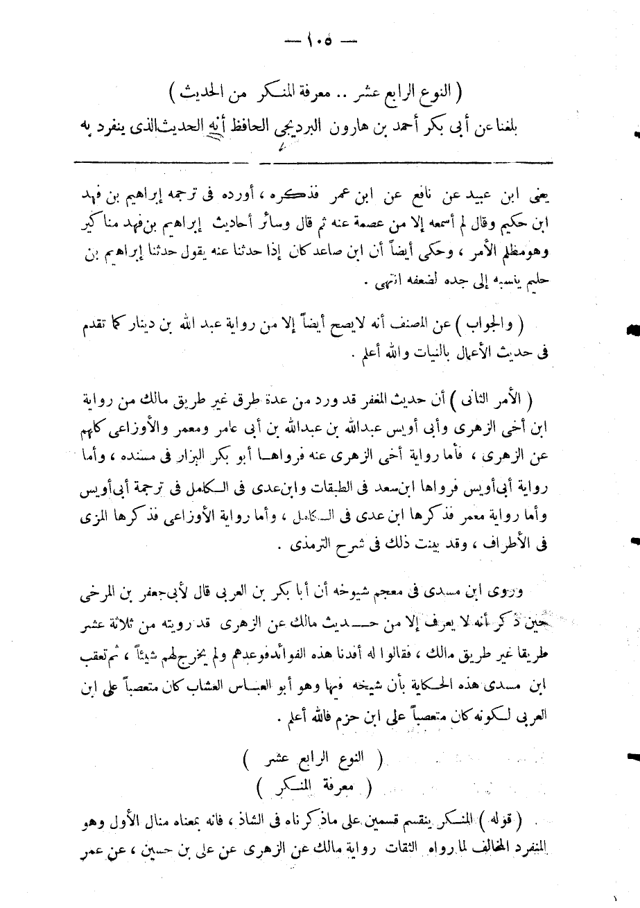 النوع الرابع عشر: معرفة المنكر من الحديث.