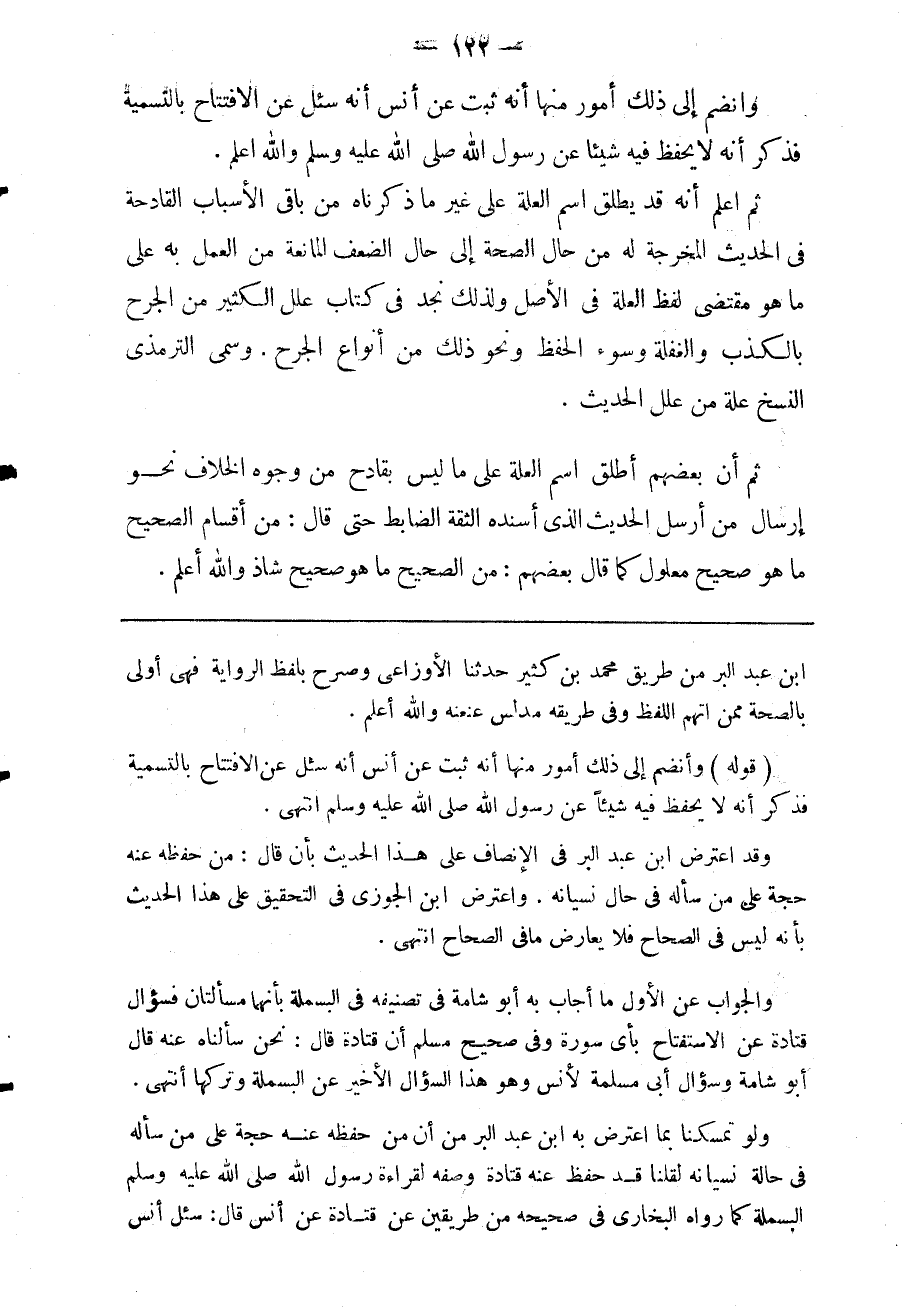 ولو تمسكنا بما اعترض به ابن عبد البر من أن من حفظه عنه حجة على من سأله في حالة نسيانه لقلنا قد حفظ عنه قتادة وصفه لقراءة رسول الله صلى الله عليه وسلم البسملة كما رواه البخاري في صحيحه من طريقين عن قتادة عن أنس قال سئل أنس