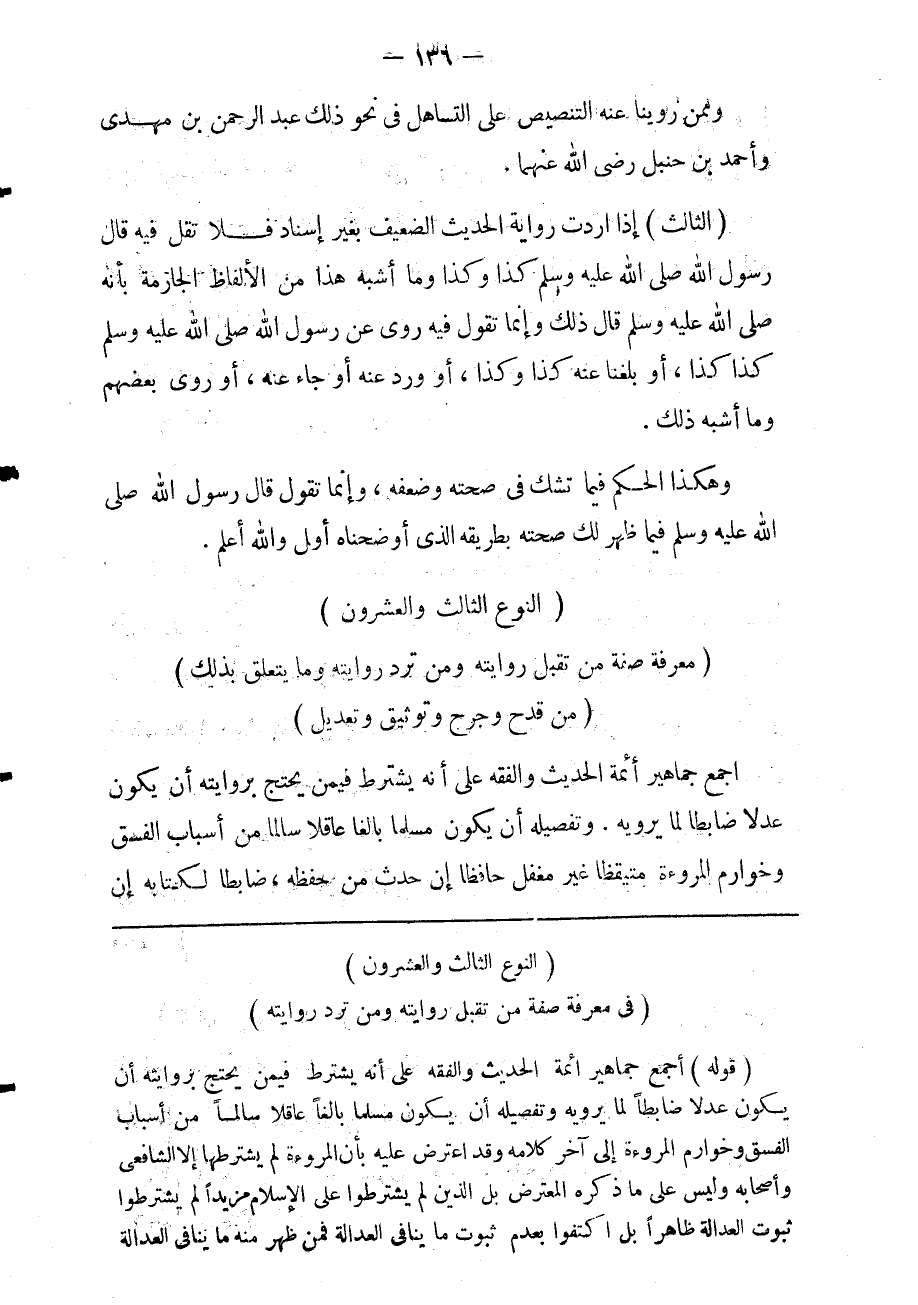 النوع الثالث والعشرون: معرفة صفة من تقبل روايته ومن ترد روايته وما يتعلق بذلك.