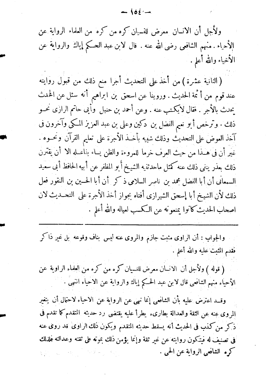 ولأجل أن الإنسان معرض للنسيان كره من كره من العلماء الرواية عن إلاحياء منهم الشافعي رضي الله عنه قال لابن عبد الحكم: إياك والرواية عن إلاحياء والله أعلم.