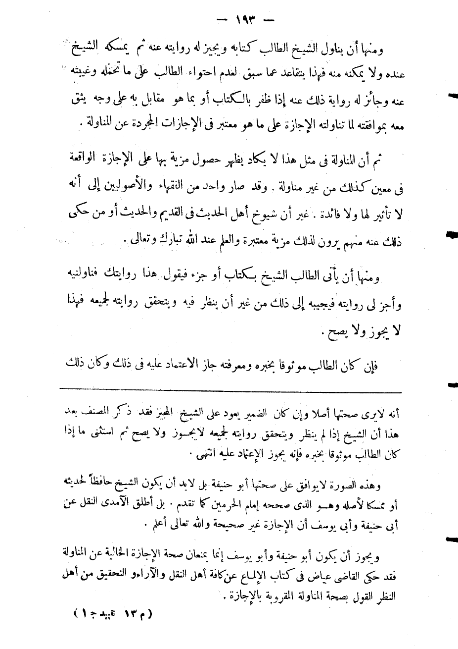 ويجوز أن يكون أبو حنيفة وأبو يوسف إنما يمنعان صحة الإجازة الخالية عن المناولة فقد حكى القاضى عياض في كتاب الإلماع عن كافة أهل النقل والآراء والتحقيق من أهل النظر القول بصحة المناولة المقروبة بالإجازة.