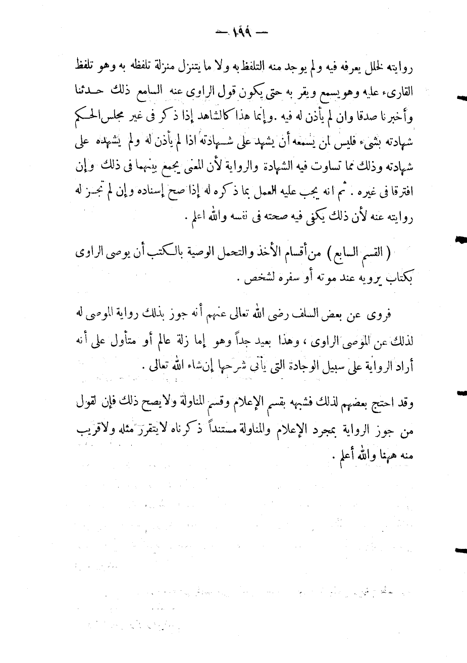 القسم السابع من أقسام إلاخذ والتحمل: الوصية بالكتب أن يوصي الراوي بكتاب يرويه عند موته أو سفره لشخص.